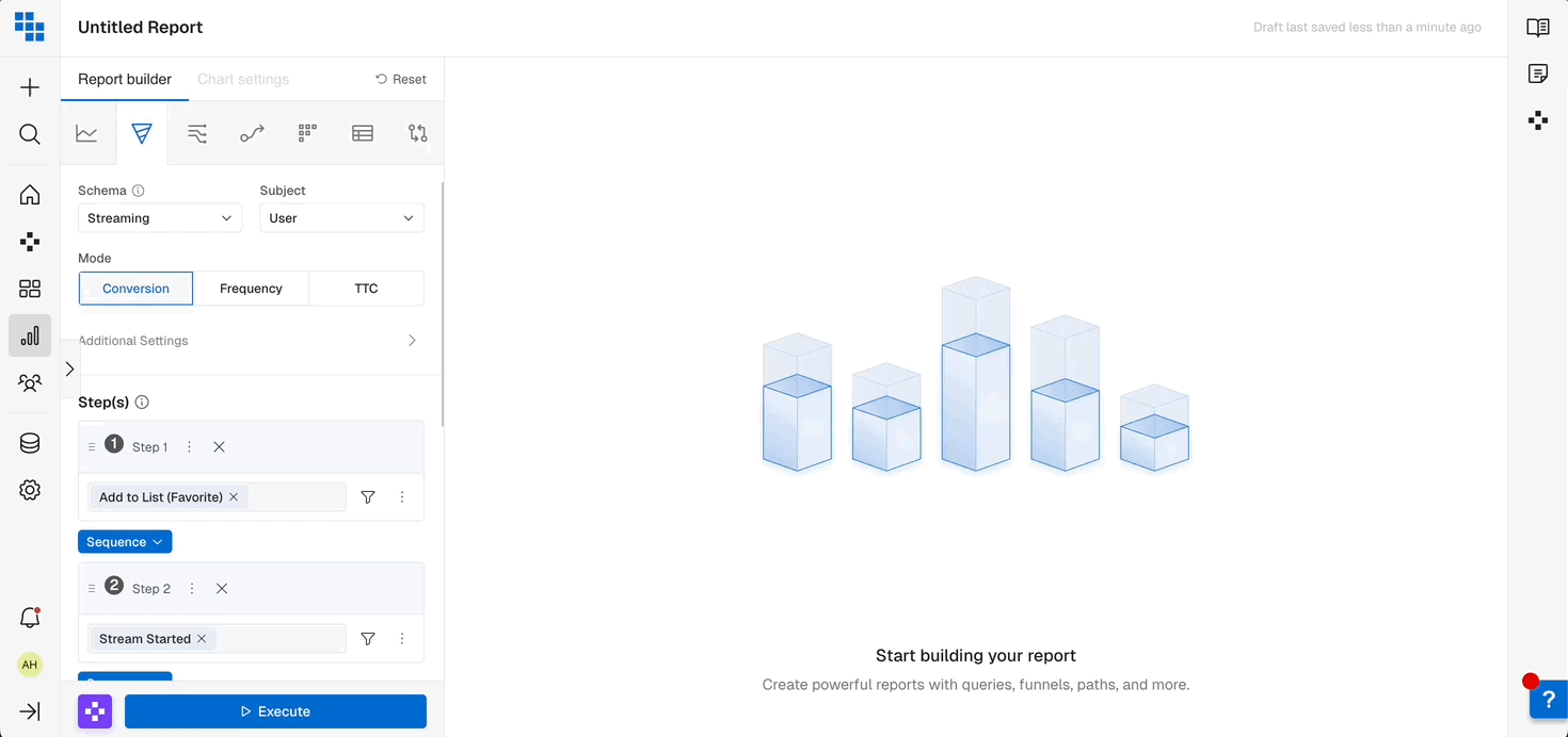 When building a funnel you may need to re-order steps when using a “Sequence” or “Exact” Order. In Kubit you’re able to drag and drop steps and re-order them as needed.