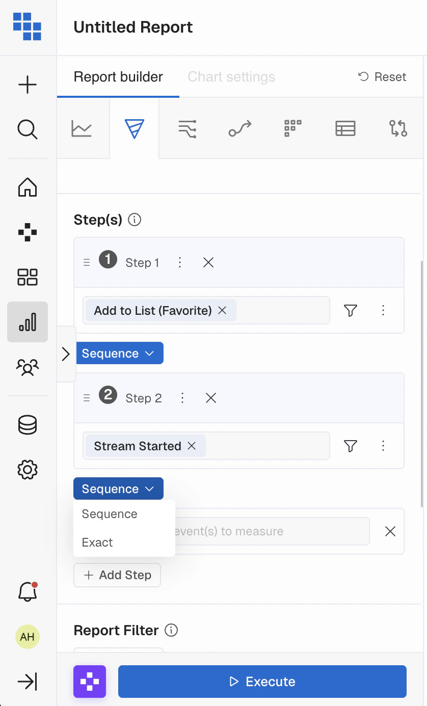 Once you’ve selected your Event for each step of the funnel you can apply filters to each step individually to ensure you are capturing the correct conditions.Exclude Events Between Steps