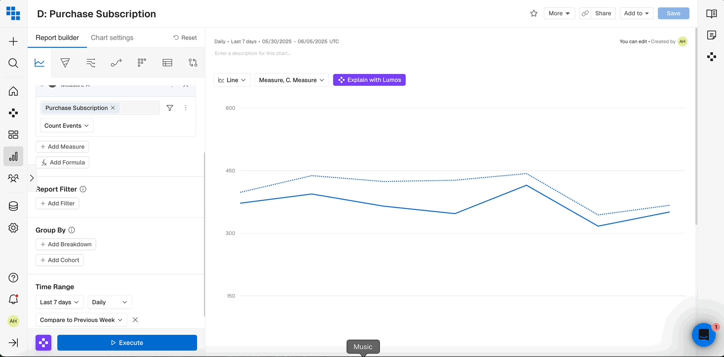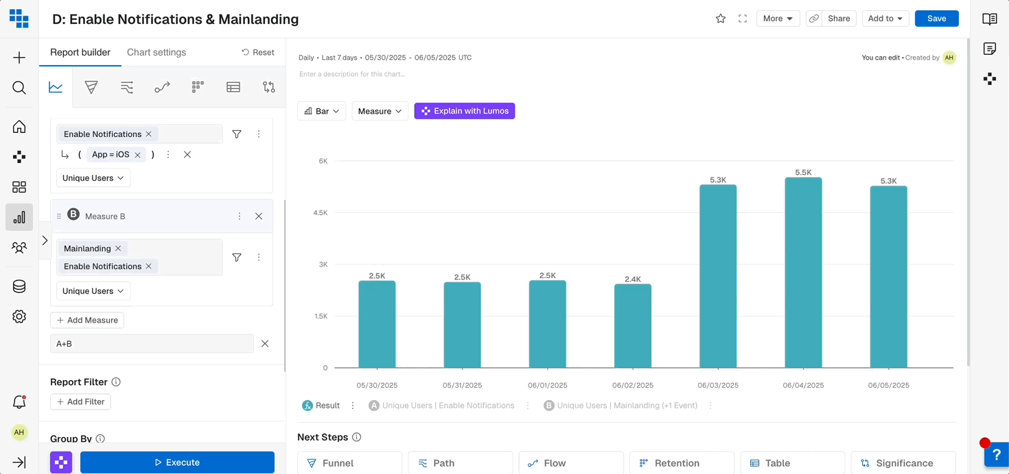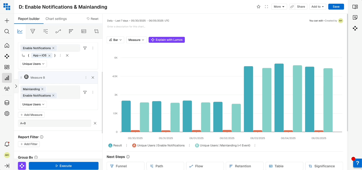 - Add additional events with the ”+ Add Measure”.