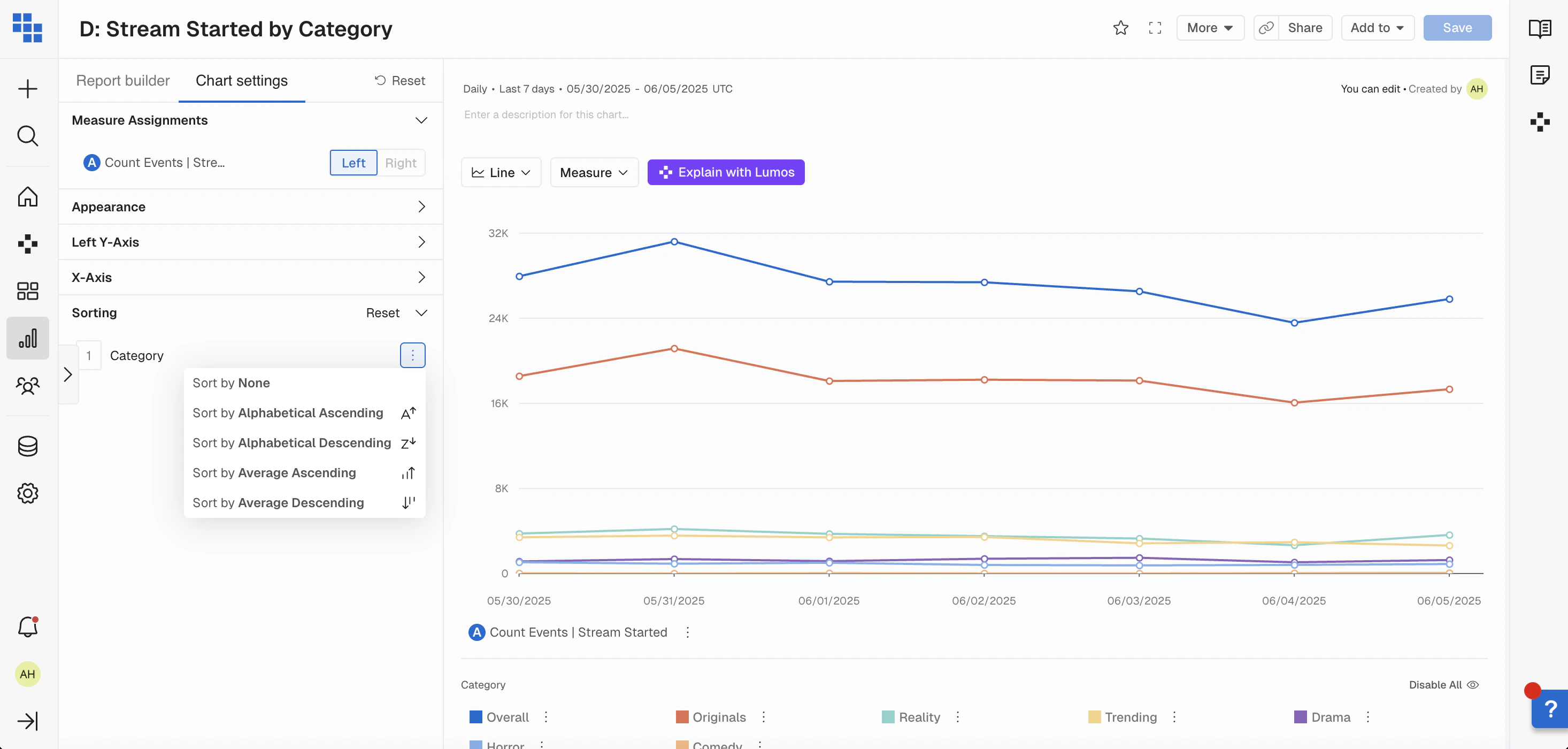 - Select the sorting logic you want to use for your report. You’re able to sort by Measures as well as discreet breakdown groups.